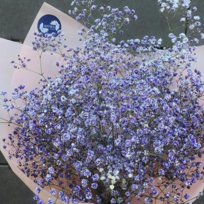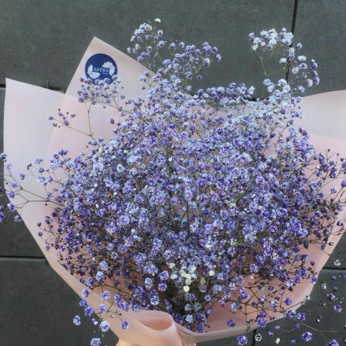 «Лавандовое созвездие» Букет из розы, гвоздики, статица и хлопка