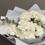 Эвкалипт – 3 шт.Тишью – 2 шт.Пленка матовая – 2 шт.Диантус белый – 9 шт.