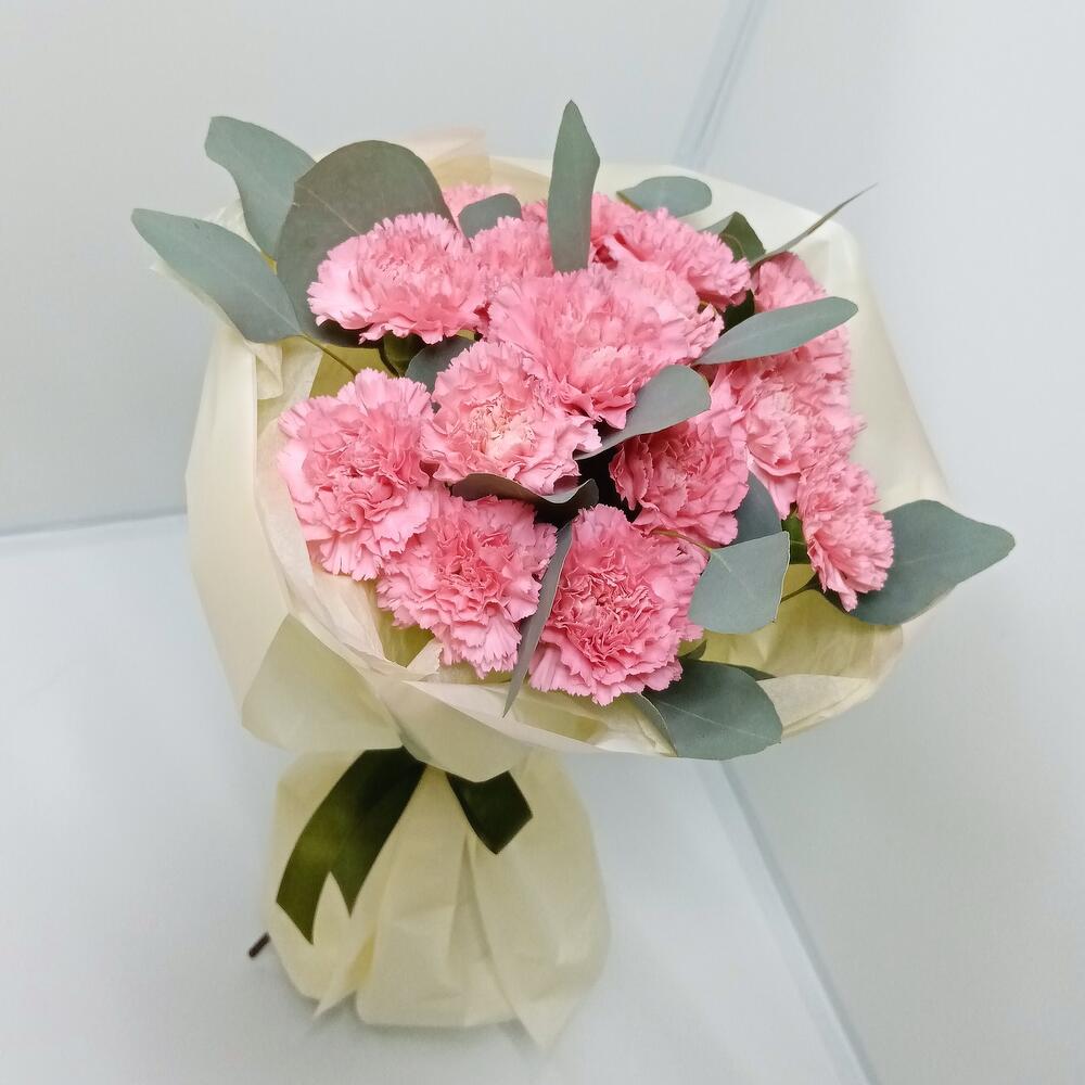 Гвоздика – 15 шт.Эвкалипт – 3 шт.Дизайнерская упаковка – 1 шт.