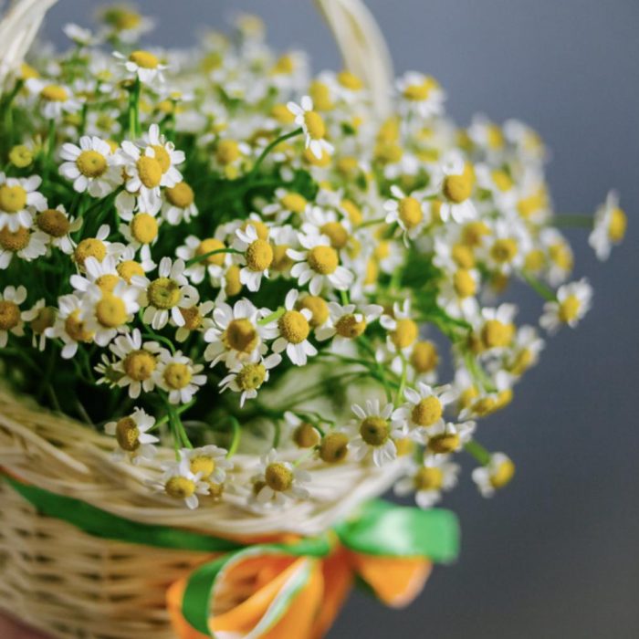 кустовая ромашка матрикария – 25 шт.корзина и декор – 1 шт.