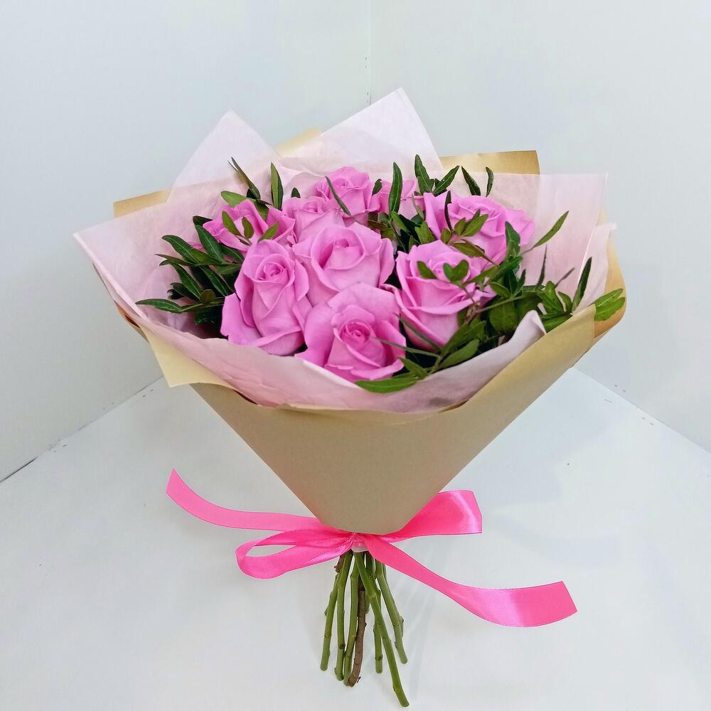 Дизайнерская упаковка – 1 шт.роза кения – 9 шт.зелень фисташки – 1 шт.