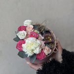 “Сладкое сердце ” – цветочная композиция с сладостями в коробке “Сердце”