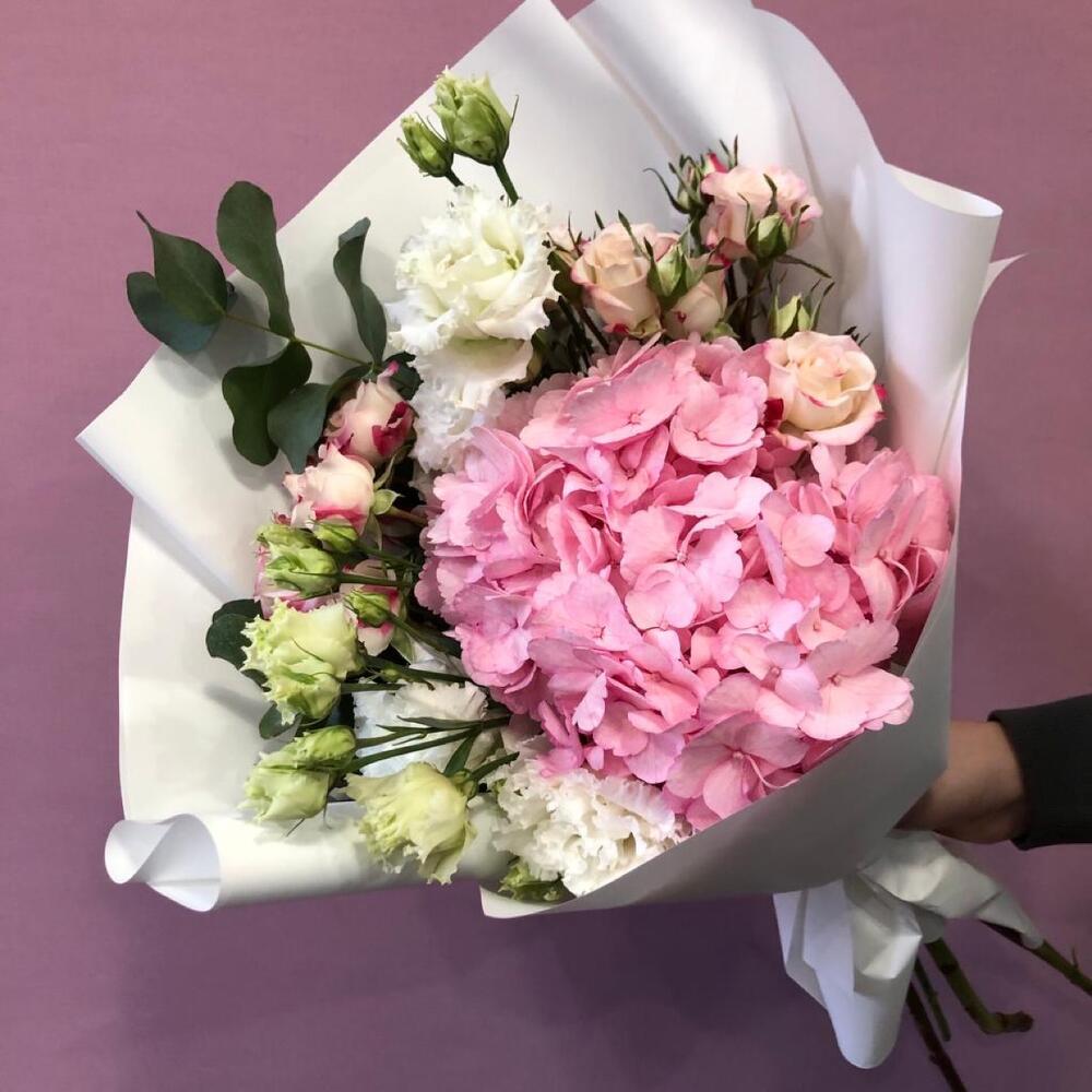 Гвоздики, Лизиантусы, Розы, Тюльпаны