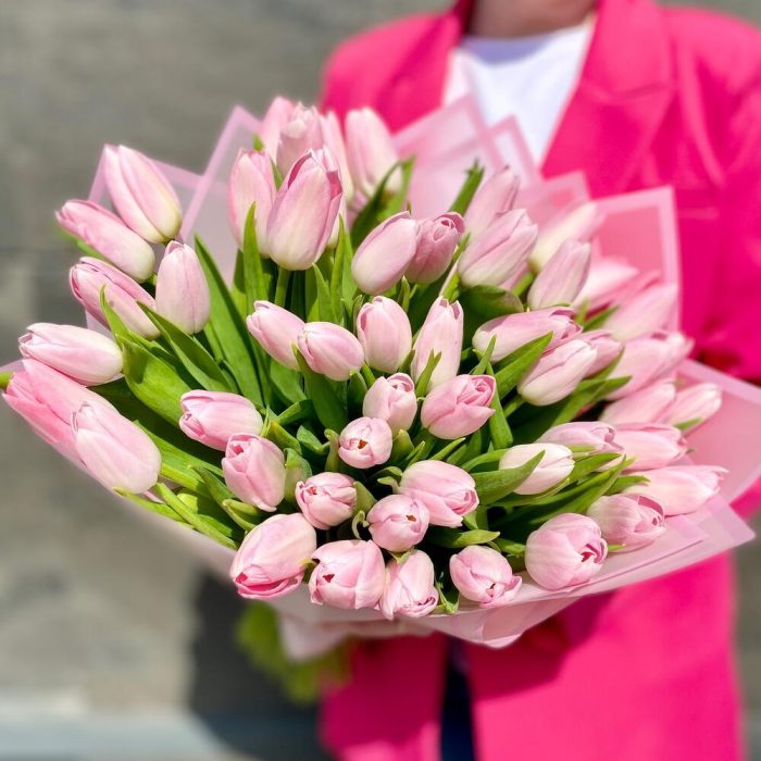 Тюльпан – 51 шт.Лента атласная – 1 шт.Упаковка дизайнерская – 3 шт.